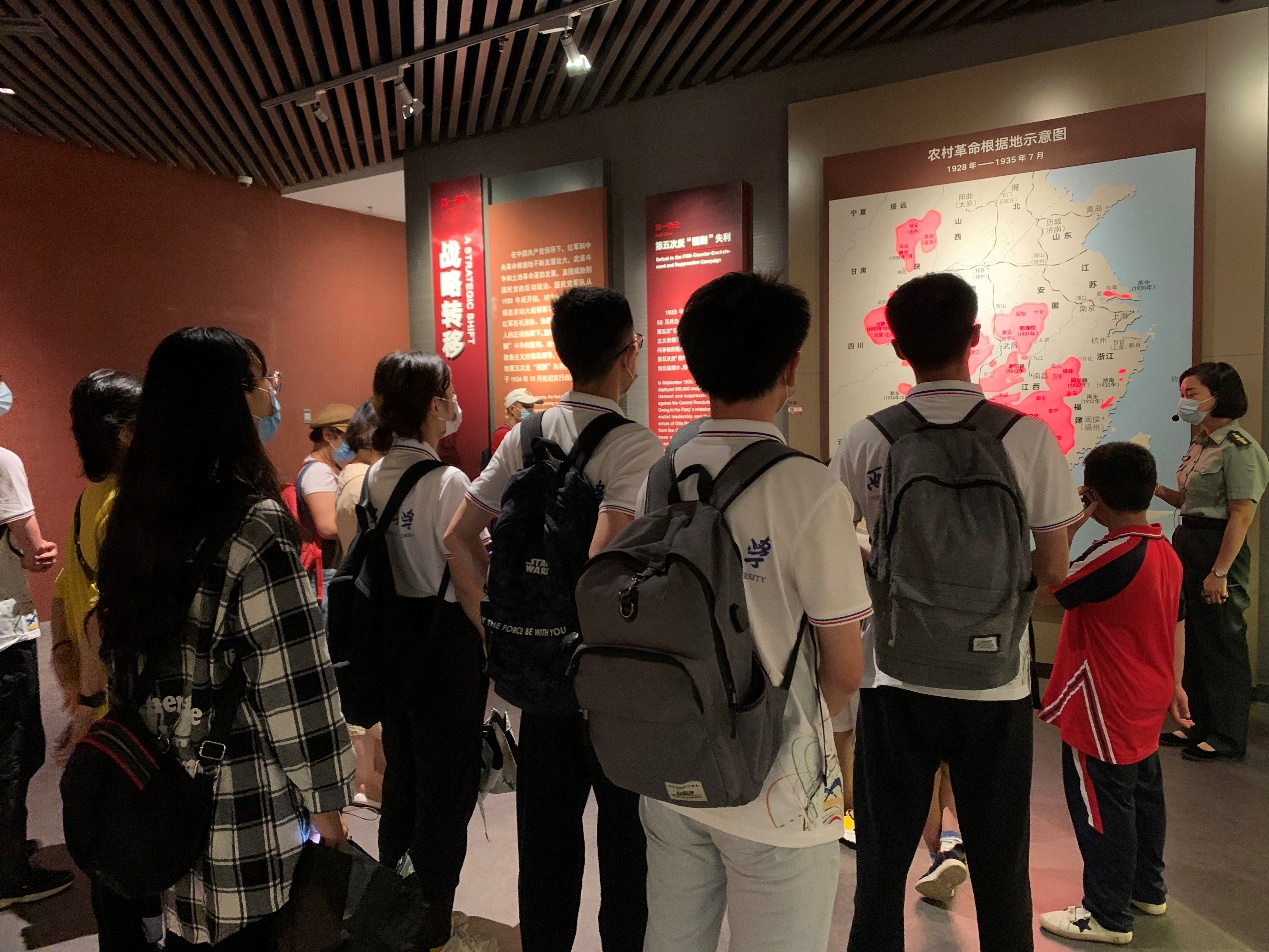 7月6日上午,在指导老师高云的带领下,实践队员们首先来到红军长征突破湘江烈士纪念碑园,这是为纪念在中央红军长征途中,突破国民党蒋介石第四道封锁线牺牲的3万多红军英烈而建成的。在这里,实践队员们深入学习了中央红军在长征途中突破湘江的战斗经过,见识了当时使用的装备以及穿的衣物,深刻体会到长征的艰苦、红军的顽强以及他们坚定的理想信念和勇于牺牲的战斗精神。