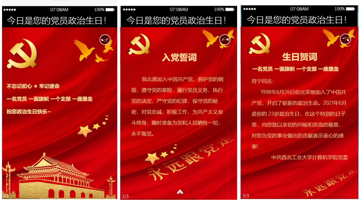 学院为每位过政治生日的党员同志赠送了纸质贺卡和电子贺卡,感谢并祝福同志们,提醒同志们牢记党员身份,不负党的重任,永葆党员本色。