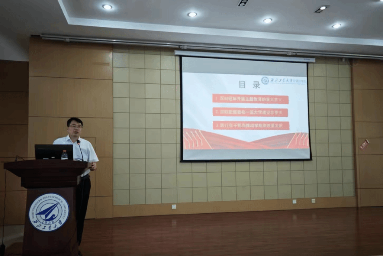 李春科从深刻理解开展主题教育的重大意义、深刻把握我校一流大学建设总要求、践行实干担当推动学院高质量发展三个方面展开论述。一是通过深入阐述开展主题教育的时代背景、重大意义和总要求,习近平新时代中国特色社会主义思想的科学体系、丰富内涵和精髓要义,学院在推动学院主题教育走深走实方面的具体行动等,带领师生在学思践悟中站稳政治立场、坚定政治方向,鼓励师生争做“四有”好老师和有理想、有本领、有担当的新时代青年。二是围绕习近平总书记“要把高等教育作为建设教育强国的龙头”的要求,传达最近学校党委书记李言荣主题教育专题党课精神,深刻把握学校“双一流”建设和高质量内涵式发展的总要求。三是立足于学院实际,通过对标国内外一流高校,分析学院在发展中存在的问题与差距,坚持问题导向、目标导向,梳理下一步的发展思路和重要举措,以建设一流学院、一流学科为目标,奋力谱写威尼斯人app