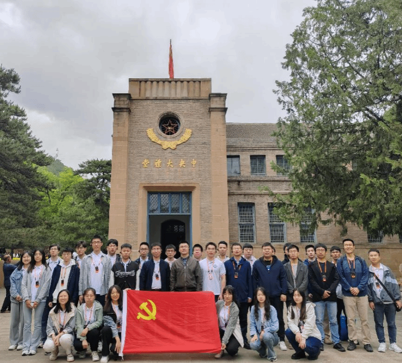 随后,师生们来到位于延安城西北的杨家岭和枣园两处革命旧址,参观了中共七大会址。在枣园,师生们参观了周恩来,朱德,王稼祥等人的旧居。毛泽东等五大书记的铜像以昂首阔步的姿态屹立在这里,展现出的意气风发、斗志昂扬的伟大革命精神感染并激励着青年党员、团员们积极投身到新时代社会主义建设的伟大事业中去。