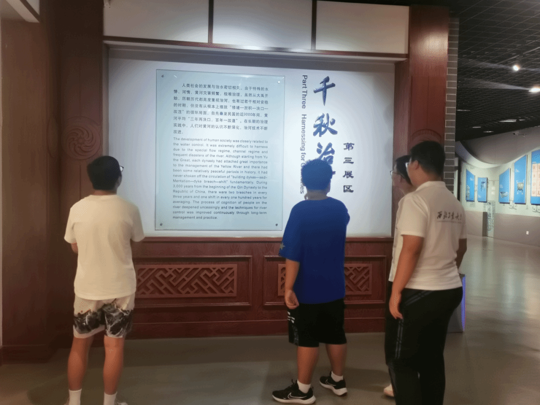 实践队队员走过黄河博物馆每个展厅,看过600多件照片、文献、文物、雕塑,在有限的时空中,不仅了解了黄河流域的地理地貌、自然概况,还感受到了黄河文化的博大精深、丰富灿烂。最后,实践队员与博物馆工作人员进行了座谈,互相分享交流了自己心中的黄河文化。工作人员谈到经过多年的发展,黄河博物馆已经成为保护和传承黄河文化、传播水利科学知识、宣传人民治黄成就、开展生态环保教育、提高防汛抗灾意识、培植爱国主义精神的重要场所。