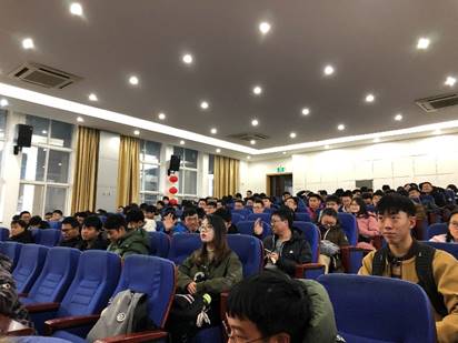 2018级于学院新报告厅召开2019-2020学年秋学期最后一次大班会。 会议由2018级辅导员尹翰林主持,学院副书记万海东、辅导员曹聪琦、康天雨参加。