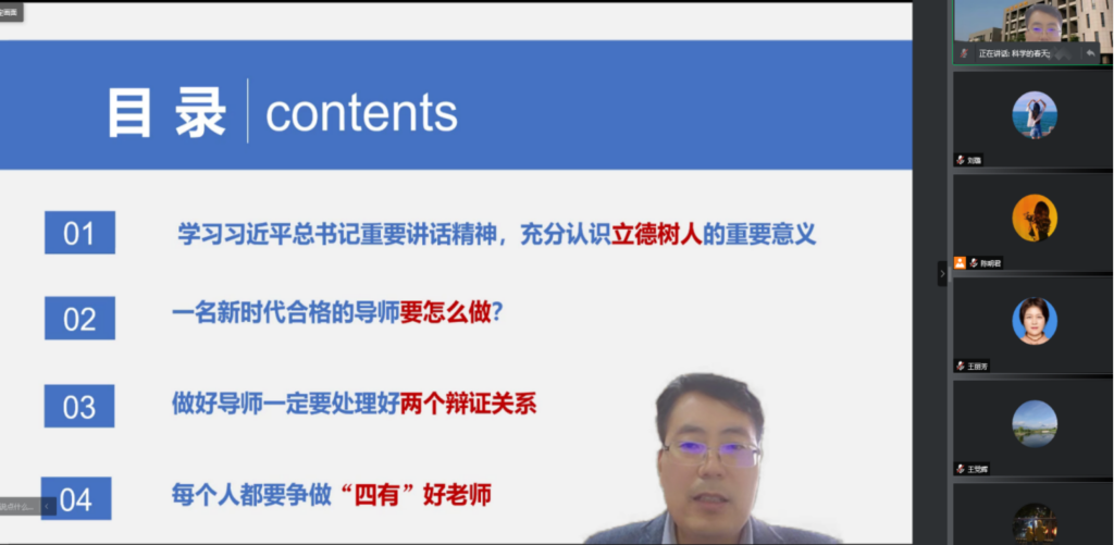 为全面贯彻落实习近平总书记对研究生教育工作重要指示精神和全国研究生教育会议精神,推进落实立德树人根本任务,适应我国研究生教育发展的新形势和新要求,加强研究生导师队伍建设,提高导师指导和培养研究生的能力,促进计算机学科一流研究生培养。10月19日下午,李春科书记为全院研究生导师作了题为“立德树人,因材施教 —— 如何做一名新时代优秀的研究生导师”的主题党课。由于疫情防控的需要,本次培训会采用线上形式召开,由威尼斯人app-澳门威尼斯人app