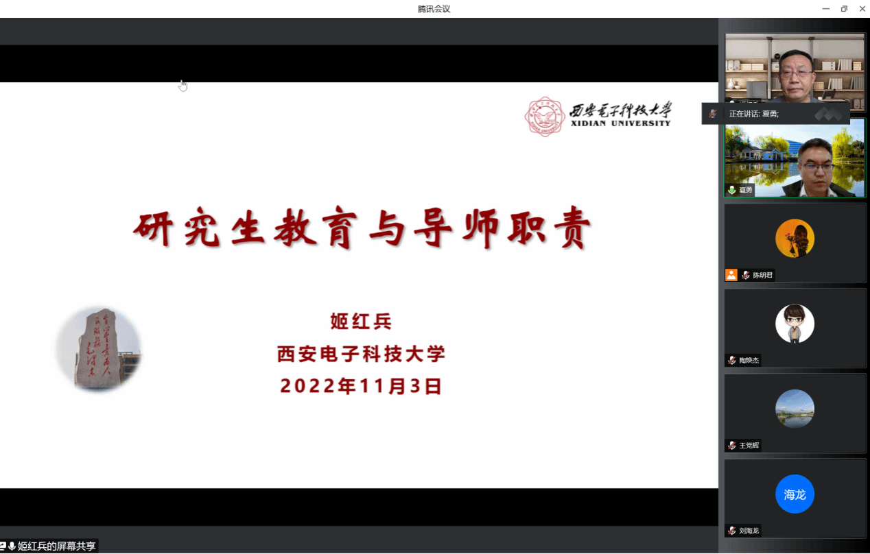召开了“2022年度第二场研究生导师培训会”,主题为“研究生教育与导师职责”。由于疫情防控的需要,本次培训会采用线上形式召开,邀请了西安电子科技大学原研究生院常务副院长、发展规划处处长兼211工程办公室主任姬红兵教授担任主讲,威尼斯人app