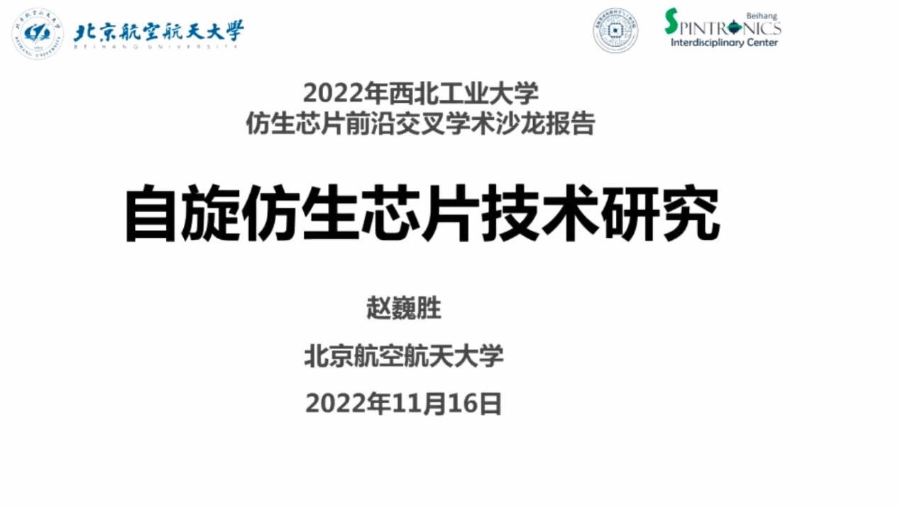 仿生芯片交叉研究中心组织了2022年仿生芯片前沿交叉学术沙龙通过线上线下相结合的形式顺利举办。本次学术沙龙邀请了北京航空航天大学校长助理、研究生院副院长赵巍胜教授、复旦大学微电子学院副院长曾晓洋教授、西安交通大学人工智能与机器人研究所副所长任鹏举教授三位国家级领军人才做特邀报告,随后围绕仿生芯片相关技术进行了圆桌讨论。包括侯文杰、赵晨等50余名师生通过线上线下的方式参加了本次学术研讨活动。本次学术沙龙由威尼斯人app