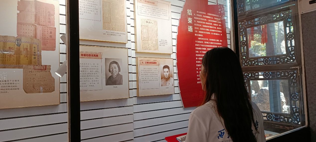 英名垂青史,热血铸丰碑。随后,实践队来到了被誉为“国内孤例”的个园。一方面,个园因“竹”而闻名,“不出户而壶天自春,尘马皆息”;另一方面,个园与红色历史息息相关,当年中国人民解放军第八兵团渡江战役指挥部就设在个园抱山楼。怀着崇敬之心,实践队员们走进了这座镌刻红色往事的楼阁。珍贵的历史图片、见证“血与火”的革命文物、按比例复原的指挥场景,一一再现了解放军浴血奋战、横渡长江的英勇气概和扬州人民舍生忘死、全力支前的无私奉献精神, 反映了军民团结一致、并肩战斗、为解放全中国作出的卓越贡献。2021级硕士王一贵深受触动,他表示:“和平与幸福来之不易,我们要铭记历史、不忘初心,走好新时代的长征路!”