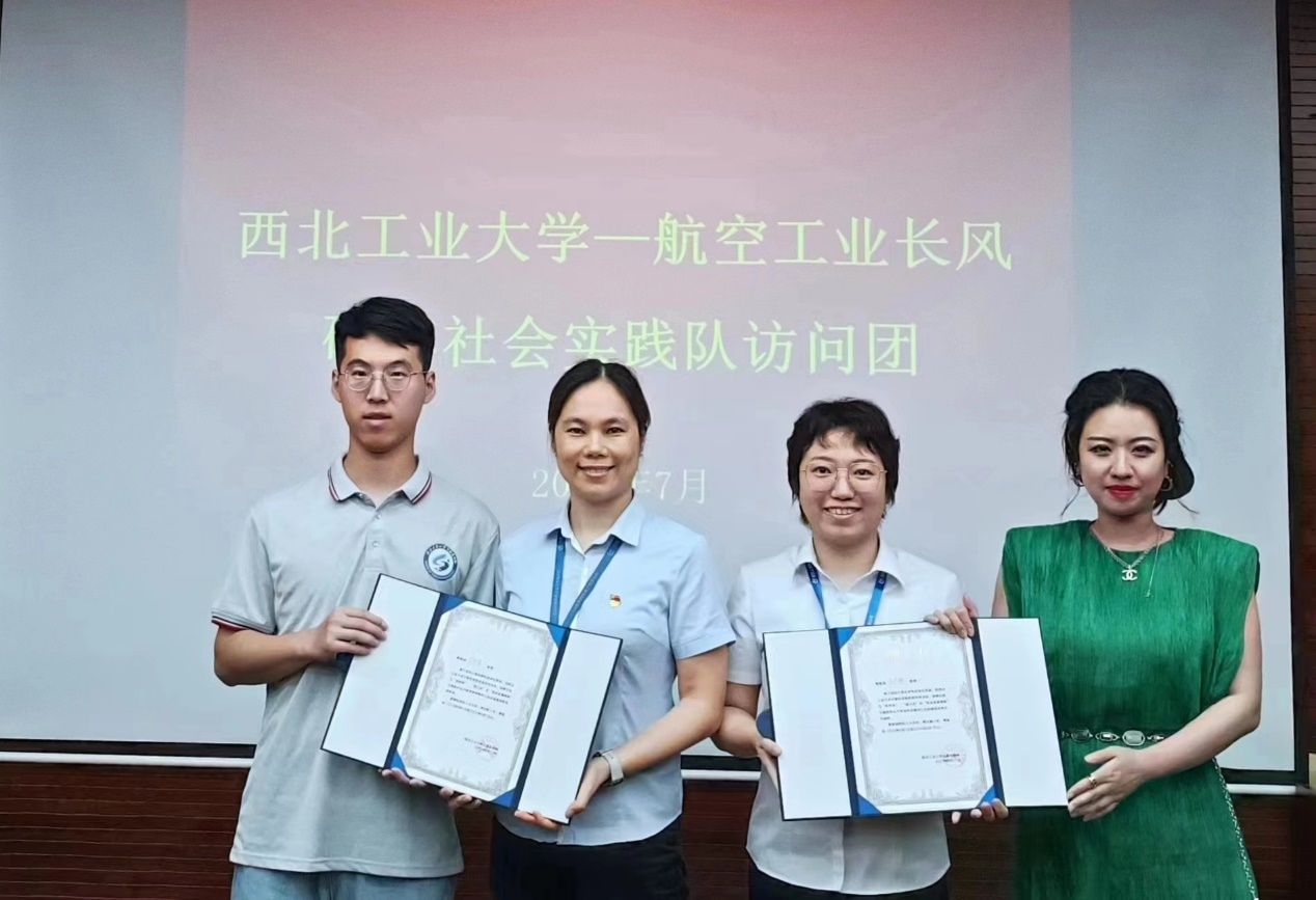 已建立的合作关系和成果。周颖老师也向航空工业长风对实践队的关心和支持表达了感谢,简要介绍了学院学科建设、人才培养、党建工作等方面的情况,并对进一步的深入合作深表期待。
