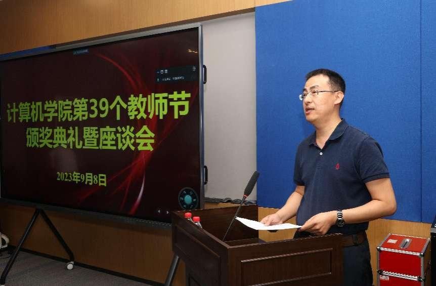 2023年“躬耕教坛 强国有我”庆祝教师节表彰座谈会在学院楼105会议室举行。党委书记李春科、院长尚学群,学院领导班子、各科研团队负责人、获奖教师、新入职教师和学生代表参加大会。表彰座谈会由副院长郭斌主持。