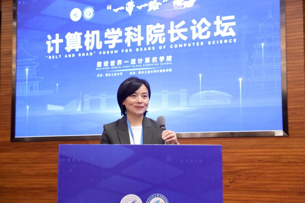 西北工业大学党委常委、副校长张艳宁出席开幕式并致辞,她强调计算机学科的重要性,介绍了西北工业大学和西工大计算机学科的基本情况,表示西工大脉源三支、百余次创造“中国第一”,厚植“总师”型育人文化,坚持“三航”特色,愿与计算机学科同仁一起加强教育合作、推动学科发展,助力“一带一路”建设,贡献西工大力量。