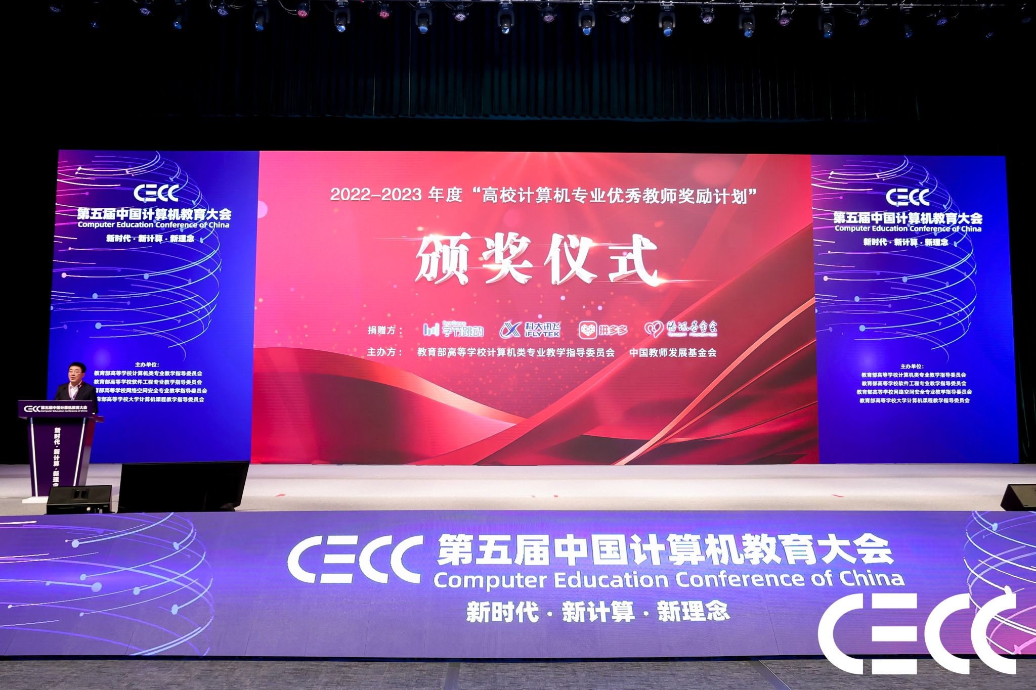 12月2日,第五届中国计算机教育大会(CECC)在厦门国际会议中心召开。大会以“ 新时代·新计算·新理念 ” 为主题,吸引了来自全国计算机学术界、教育界和产业界的100多位领导和专家,以及3000多位高校教师和产业代表参与,共同探讨新时代计算机教育的新理念、新技术和新趋势。在与会嘉宾的见证下,举办了2022—2023学年度高校计算机专业优秀教师奖励计划颁奖仪式,表彰了来自全国32所高校计算机学科的55位优秀教师,威尼斯人app-澳门威尼斯人app