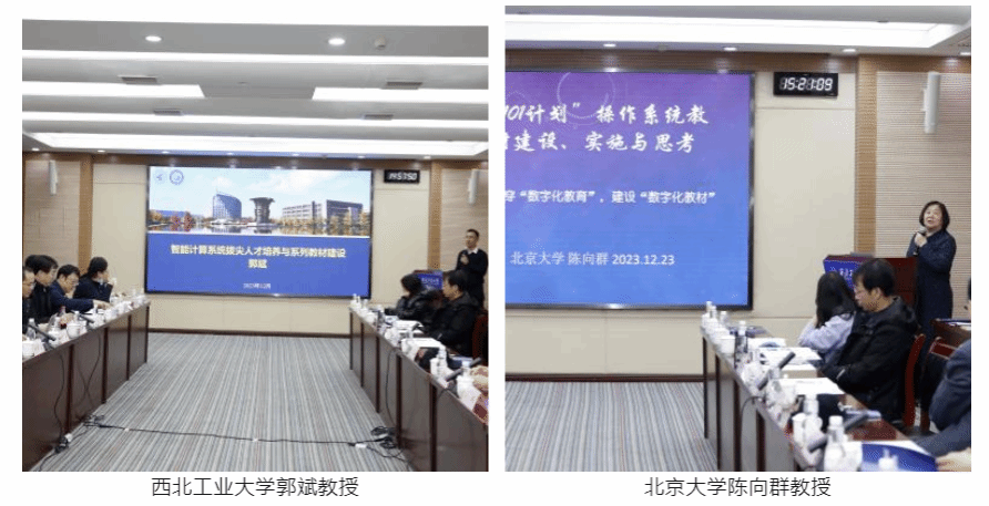 人类正在进入人机物融合万物智能互联时代。为促进“计算系统”在智能时代的新发展,培养具有家国情怀、能解决“缺芯少魂”问题的智能系统“总师型”拔尖创新人才,推动我国高校信息和计算机类专业系统能力培养,西北工业大学结合学科特色优势,与机械工业出版社共同发起策划“计算报国——智能计算系统”系列教材。2023年12月23日,该系列教材首次研讨会在西北工业大学友谊校区成功举办。本次研讨会由西北工业大学主办,机械工业出版社协办,来自清华大学、北京大学、国防科技大学、中国科学技术大学、华中科技大学、北京航空航天大学、上海交通大学、湖南大学、西安交通大学、西安电子科技大学、哈尔滨工程大学、翔腾微电子科技等高校和企业的三十余位专家莅临本次会议。会议由郭斌副院长和张羽教授共同主持。