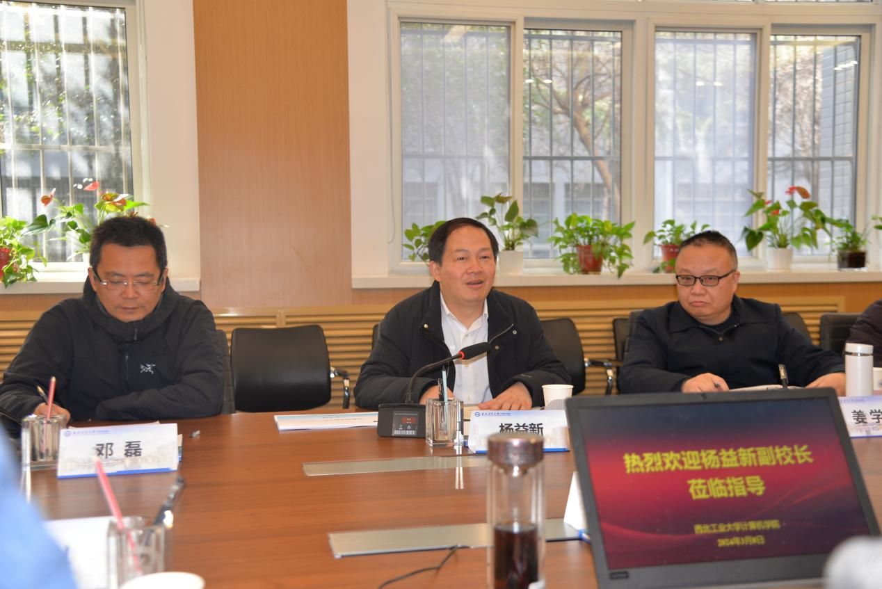 ,虽然以前对学院的情况也比较了解,但今天是第一次全面深入调研。对学院近年来的快速发展和各个方面取得的突出成绩非常认可,也衷心感谢大家和全体师生。现在全校都在聚焦“127”目标,谋划奋进新征程,希望和大家一起努力,一是强化学科专业特色,打造西工大计算机学科名片;二是筑牢总师育人特色,着力培养有影响力的领军人才;三是建好实验平台,提升信息类学科实验室展示度;四是优化人才队伍结构,提升行业影响力;五是以重大项目落地为抓手,深化学院和科研院所、企业深度合作,持续推进学院高质量内涵式发展。