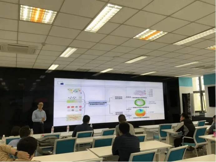 接着,冯山山资深科学家向大家做了报告,题目为《非欧空间图表示学习及其应用》。 主要介绍了非欧空间的几何特性,非欧空间图表示的技术原理和研究动态,以及非欧空间表示学习在时空大数据中的应用。报告最后,冯山山和与会师生探讨了非欧空间图在计算机视觉等任务中的应用和发展,使参会同学受益匪浅。
