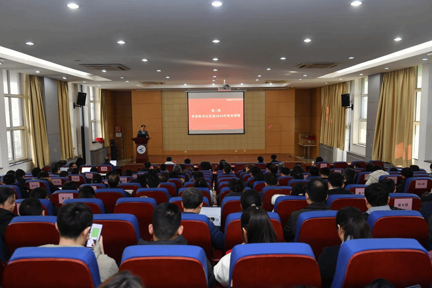 在学院报告厅召开2024年度总结表彰大会,学院近两百名教职工出席会议,会议由学院党委书记李春科主持。